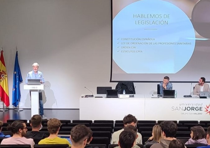 Yolanda Marcén, Tesorera de la Junta de Gobierno, realizó una breve presentación del Colegio y de los servicios de los que disfrutan los colegiados; y Ana Cunchillos, Asesora Legal del Colegio, les introdujo en una primera toma de contacto de lo que supondrá su incorporación al mercado laboral y las distintas salidas profesionales.