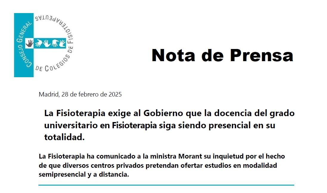 Desde el Consejo se ha enviado una carta a la ministra de Ciencia, Innovación y Universidades, Diana Morant, para hacerle partícipe de esta intención académica y del frontal rechazo de la Fisioterapia, desde sus diferentes ámbitos, formativo, científico, laboral y profesional, a la misma.