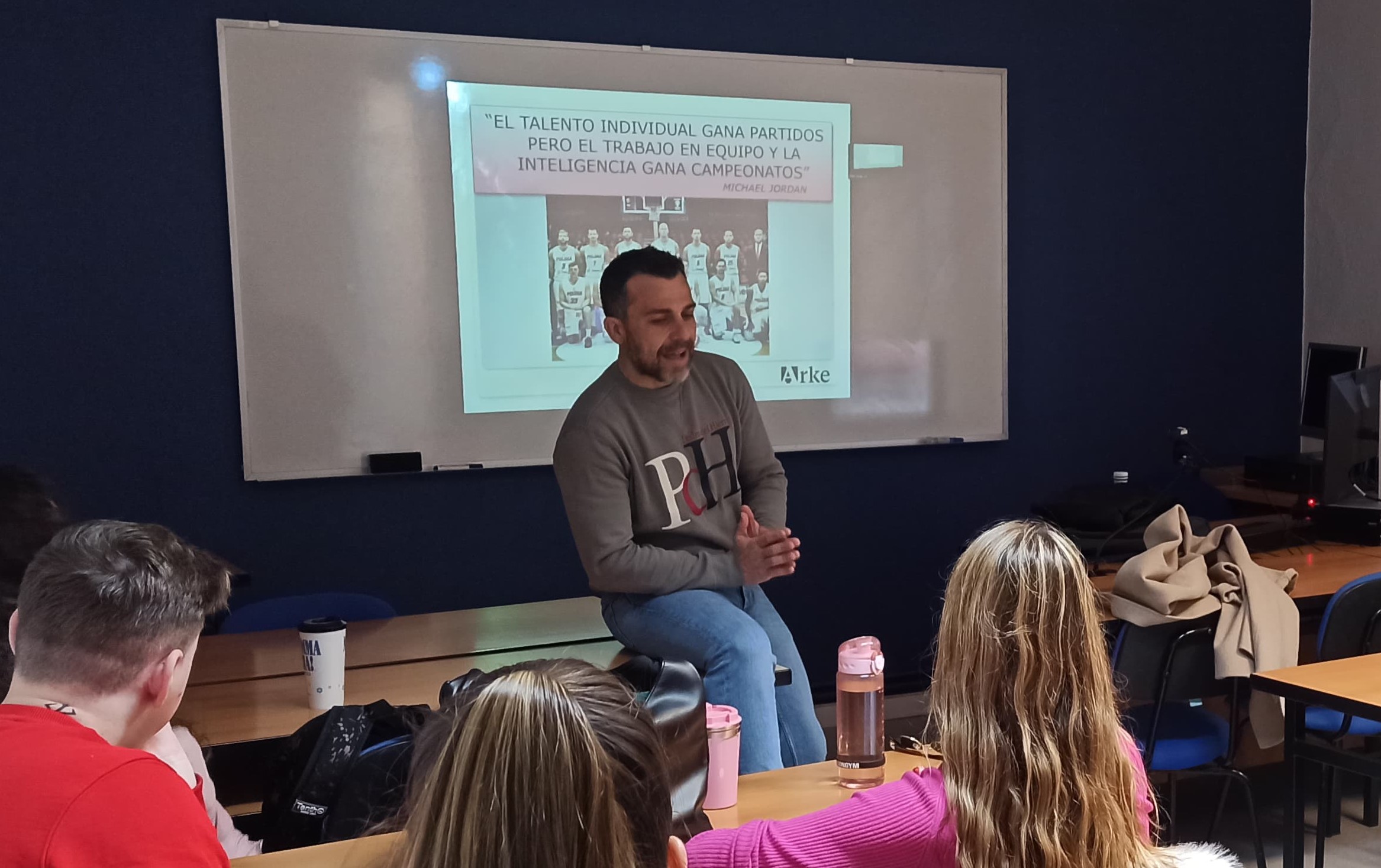 Nuestro coordinador ha sabido transmitir a los alumnos la importancia del ejercicio y sus beneficios, y la necesidad de saber identificar cuándo, cómo y de qué forma deben ser “la puerta de entrada” para la derivación de los pacientes hacia el ejercicio terapéutico y su tratamiento por los profesionales adecuados para su prescripción. También habló del equipo interdisciplinar en el que deberían trabajar los sanitarios, y lo necesario que resulta tener que trabajar de la mano ante patologías en las que los diferentes profesionales sanitarios deben aportar sus conocimientos y praxis para poder abordarla. Para finalizar abordó el papel fundamental que los fisioterapeutas juegan en el deporte de rendimiento, ante una lesión o una situación concreta, y de cómo pueden colaborar.